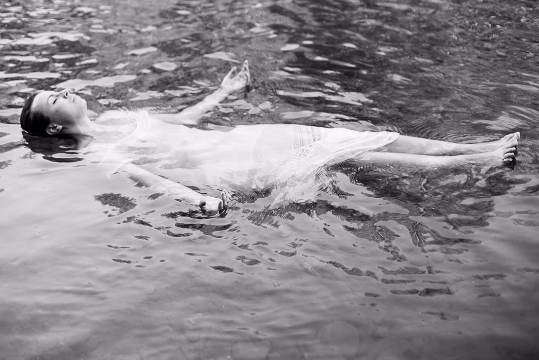 Ophélie est le symbole de la femme qui renonce, de l’abandon de soi et de la mort. À travers ma performance j’ai souhaité créer une autre Ophélie, son image en miroir.