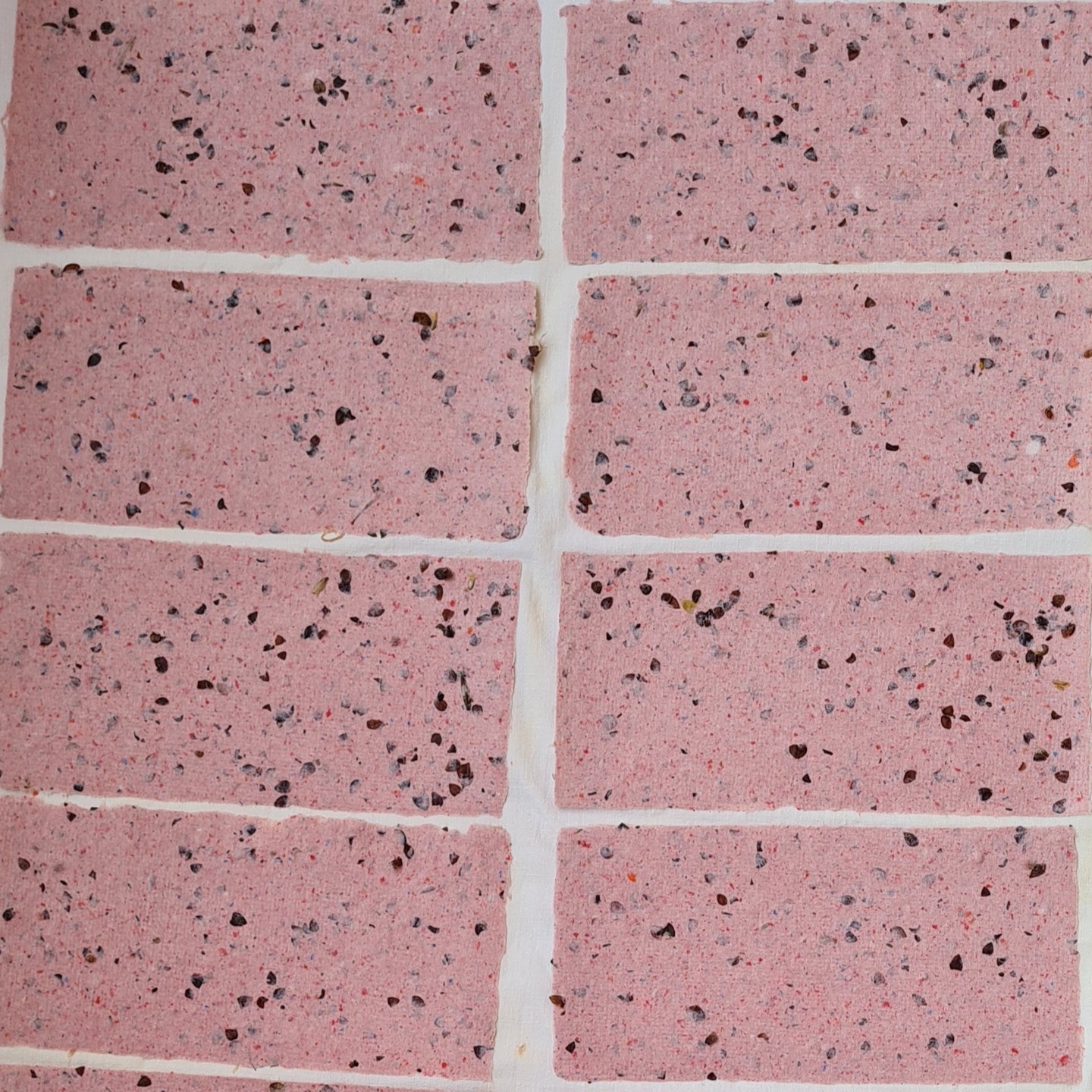 Vue de l'exposition "Aussi longtemps qu'il y aura de la lumière…" Musée Calbet, Grisolles 120 x 120 cm (dimensions variables) Papier recyclé, graines de fleurs sauvages, crayon gris et couleur