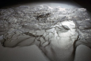 L’homme est à la recherche de la liberté, une liberté qui lui permettrait d’avoir le pouvoir sur tout ce qui l’entoure, sur ses semblables, la nature, les territoires, le temps. Dans sa course acharnée vers ce but il construit, entre autres, des routes et des villes, de plus en plus grandes, de plus en plus vite et finalement tout ce qui sort de sa main est tout aussi fragile que lui. Fragilis est une nouvelle série de cartes fragiles, des mues transparentes qui gardent la trace du geste qui les a manipulées.