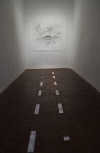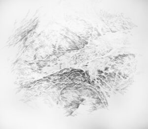 Le mémoire des territoires se mélange ici avec ma propre mémoire créant des dessins constitués uniquement de ce mot générique « mémoire » qui se superpose en plusieurs couches. Les dessins, tels des stratifications de mots, révèlent les lieux.