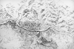 Dans cette série de dessins j’ai souhaité cartographier les villes-étapes du cheminement de ma performance ‘‘Back on track’’. J’ai cartographié les points de départ et les points d’arrivée de cette marche longue: Ax-les-Thermes (France); Montgenèvre (France); Udine (Italie); Maribor (Slovénie).