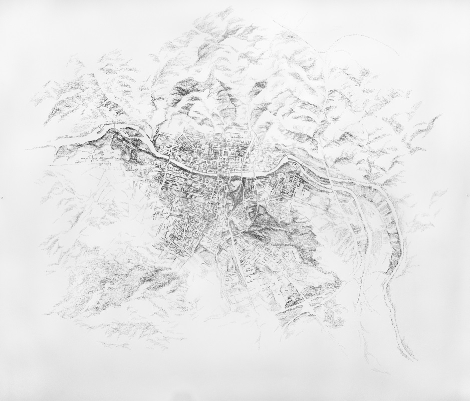Dans cette série de dessins j’ai souhaité cartographier les villes-étapes du cheminement de ma performance ‘‘Back on track’’. J’ai cartographié les points de départ et les points d’arrivée de cette marche longue: Ax-les-Thermes (France); Montgenèvre (France); Udine (Italie); Maribor (Slovénie).