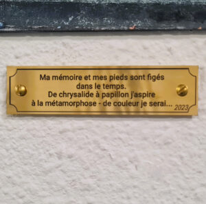 J’ai fait inscrire ces histoires sur des plaques en laiton, présentes dans l’exposition. À la fin de l’exposition, chaque plaque rejoindra son banc pour raconter son histoire aux passants.