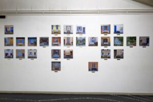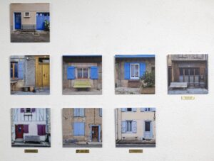 Vue de l'exposition "Au plus près de ma nature…" à Caza d'Oro, Le Mas d'Azil Impression de 27 photos sur dibond 30×30 cm, 20 plaques en laiton gravé 10 x 2,5 cm