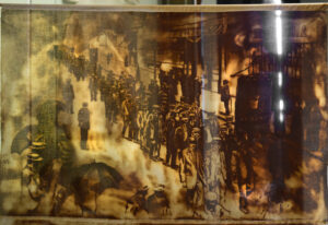 C’est une installation de cinq gravures s’inspirant en majorité de photographies anciennes trouvées dans les archives du musée ou prêtées par des particuliers.